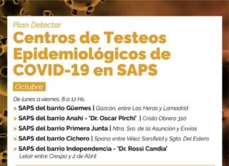 Centros de testeos municipales que funcionarán en el mes de octubre